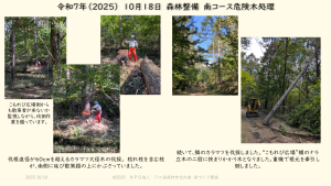 【9月3日の予定】南コースの危険木処理を中心に実施します。