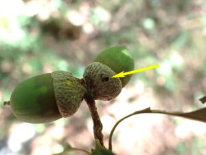 葉を巻いてその中に卵を産んで落とすオトシブミは一般に知られていますが、チョッキリ亜科のハイイロチョッキリは葉を巻かずにコナラのドングリに穴を開けて、その中に卵を産んで枝ごと切り落とします。これも卵のゆりかごなので揺籃と言うようです。