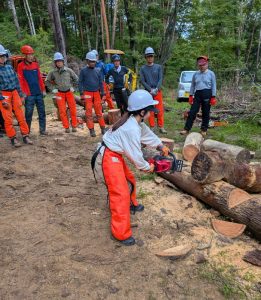 一般参加者は、12名(女性:3名でした)で、玉切、キックバック体験、ソーチェーン研ぎ、スウェーデントーチ作りと体験項目を実施できました。