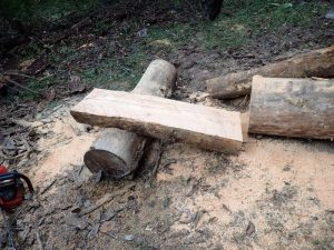 作業の手が空いたときに丸太のベンチを試作し参加者の意見を聞き、チェーンソーで作れることを確認できました。