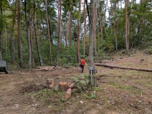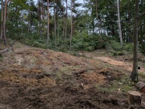 植樹会場にかぶさる傾斜木や東コースを挟んだ東側のアカマツを伐採し地拵えを行いました。