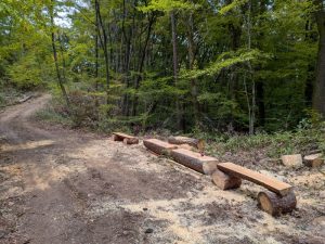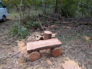 又、散策路の途中に、伐採木を利用したベンチも作りました。