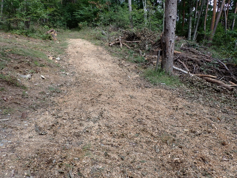 当日朝、雨が降り出しましたが、幸い実施時間中、作業に支障があるほどの雨はなく、東コース入口付近の残枝を集め、チップにして路面に敷きました。作業の後は、昼食をとり、黒曜石の水で入れた美味しいコーヒーを飲みながらの懇親会となりました。
